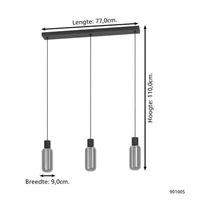 Eglo Hanglamp Maione Staal Zwart | IP20 - Geschikt voor 3x E27