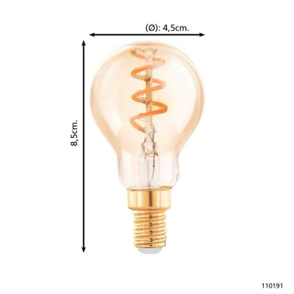 Beschrijving Eglo LED Kogel E14 Filament Amber 4W 145lm - 820 Zeer Warm Wit | Dimbaar - Vervangt 15W