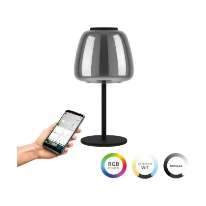 Beschrijving Eglo Tafellamp Alfero-Z Staal Zwart 7.7W 1000lm - 827-865 Afstembaar Wit + RGB | IP20 - Zigbee Dimbaar