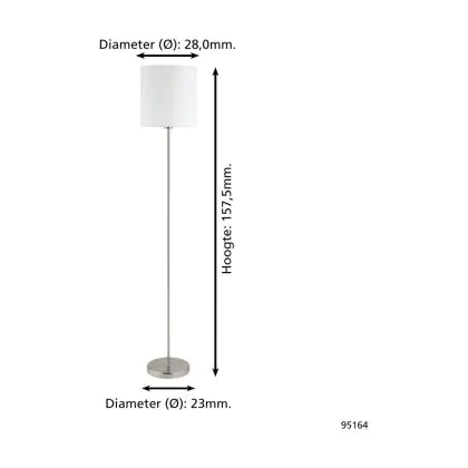 Beschrijving Eglo Vloerlamp Pasteri Staal Satijn Nikkel Wit | IP20 - Geschikt voor 1x E27