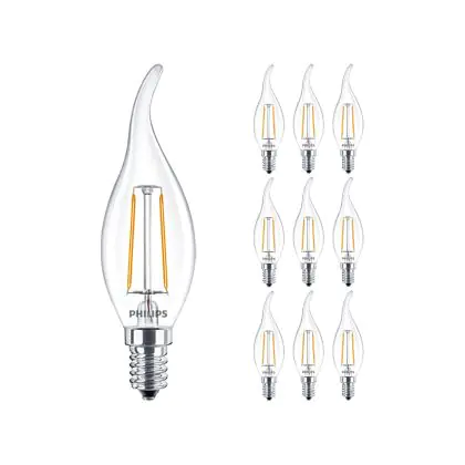 Beschrijving Voordeelpak 10x Philips Corepro LED Kaars E14 Gebogen-tip Filament Helder 2W 250lm - 827 Zeer Warm Wit | Vervangt 25W
